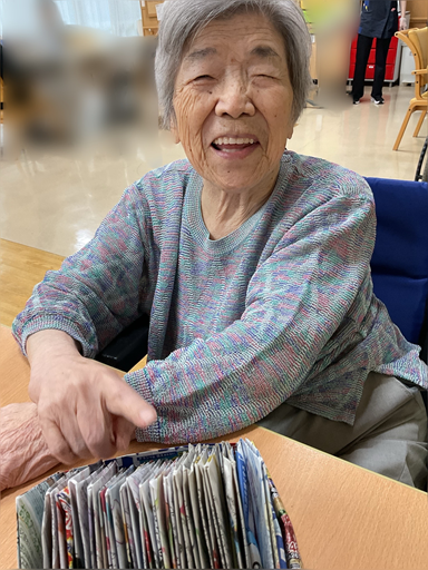「どうやんだべ?」、「難しいな~」と話されながらも、職員のやり方を見ながら器用に折られていました。