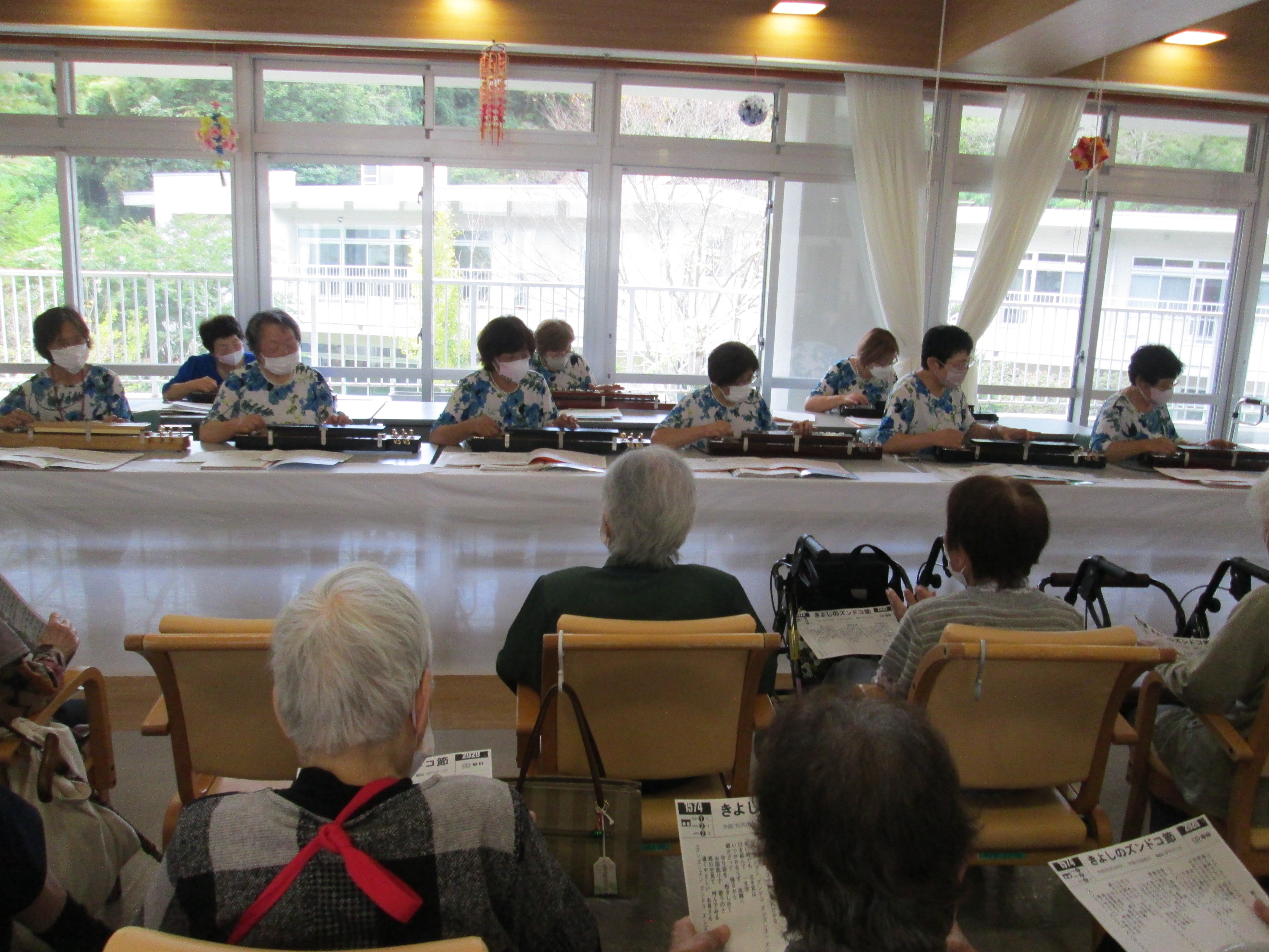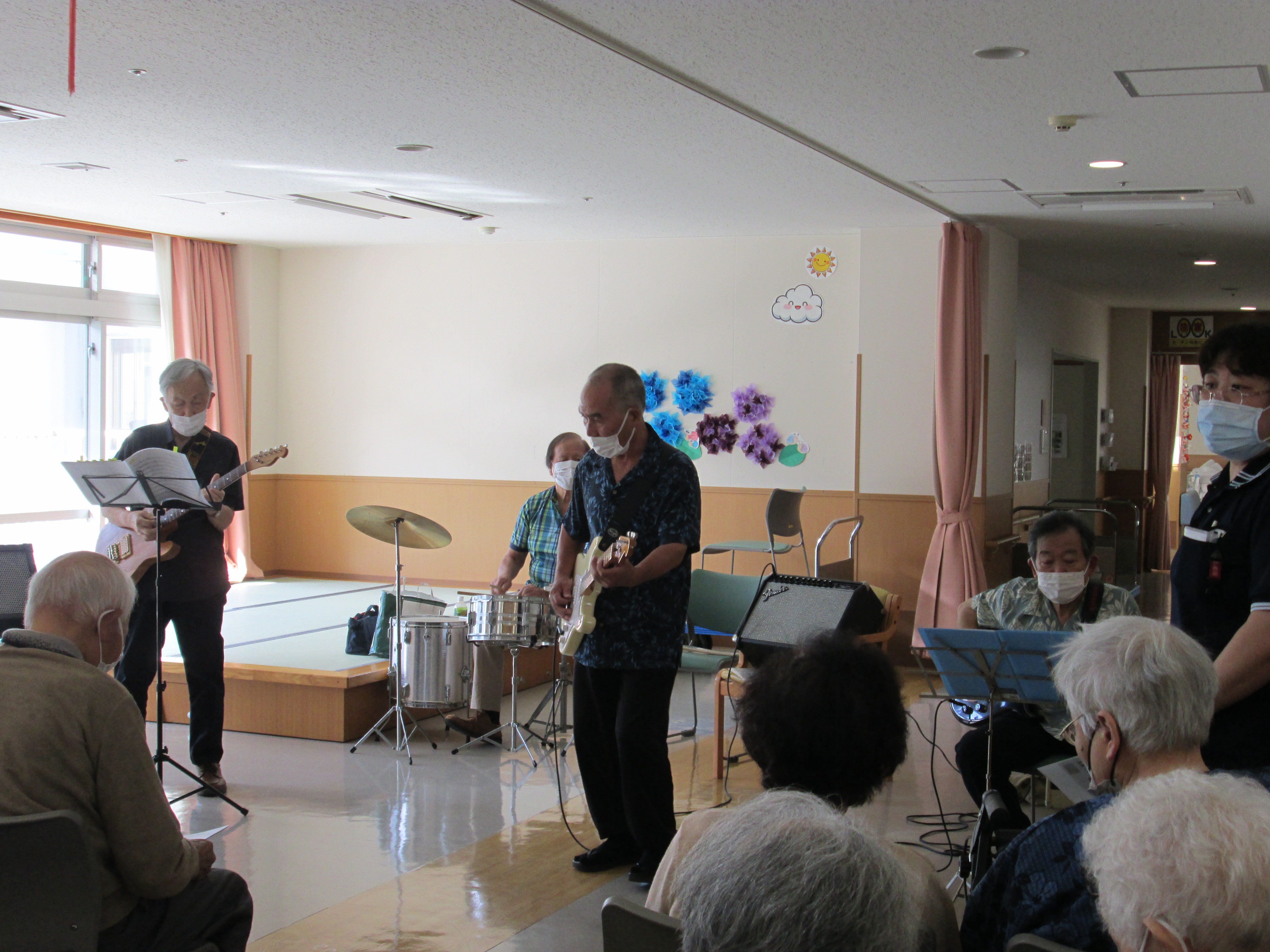 敬老の日を祝うデイサービスの行事が二日間にわたり開催されました。一日目は「クリアサウンズ」による懐かしい曲のバンド演奏が行われ、利用者の皆様は手拍子をしながら楽しまれていました。二日目は大正琴の優雅な音色に耳を傾け、穏やかな時間を過ごされました。午後三時には季節感あふれる和菓子が提供され、笑顔で召し上がる姿が印象的でした。最後には心のこもった記念品が贈られ、参加者一人ひとりに感謝の気持ちが伝えられました。