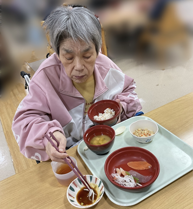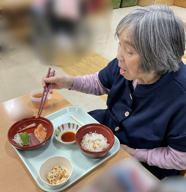 それぞれ召し上がった利用者さんからは「美味しいね」「久しぶりに刺身食べたな」等のご感想を頂きました!