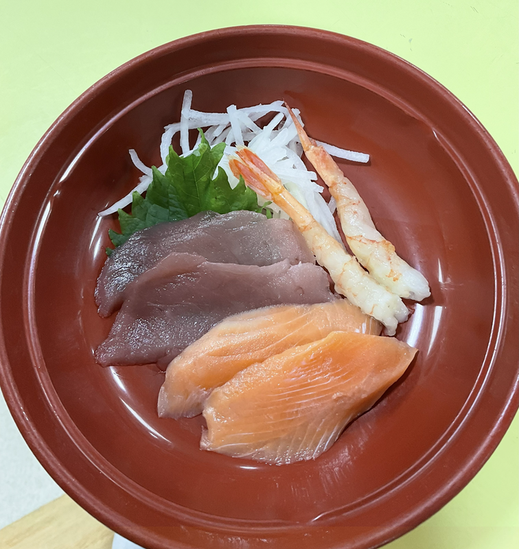 マグロ、サーモン、甘エビ3種類の盛り合わせをご用意しました!