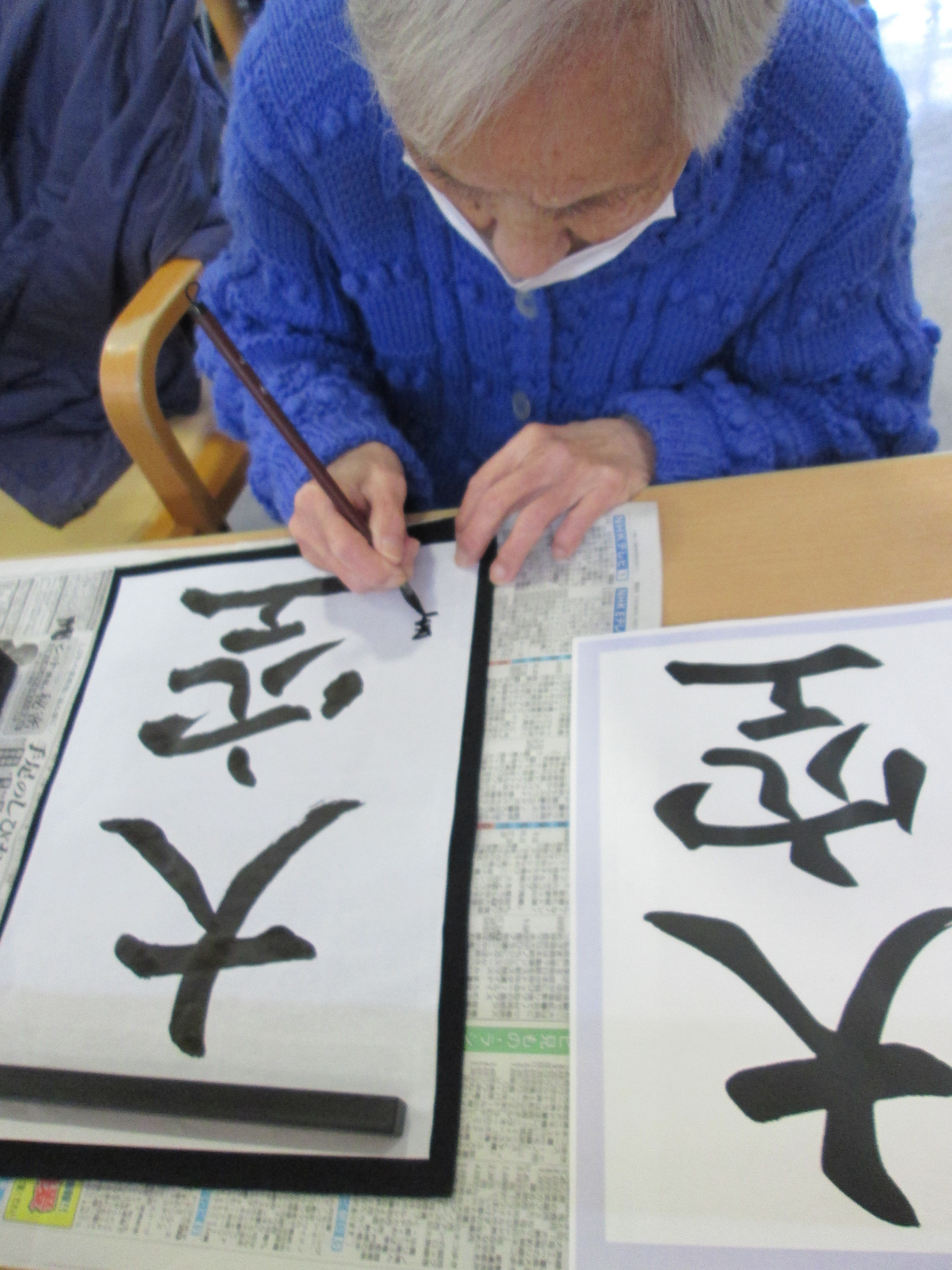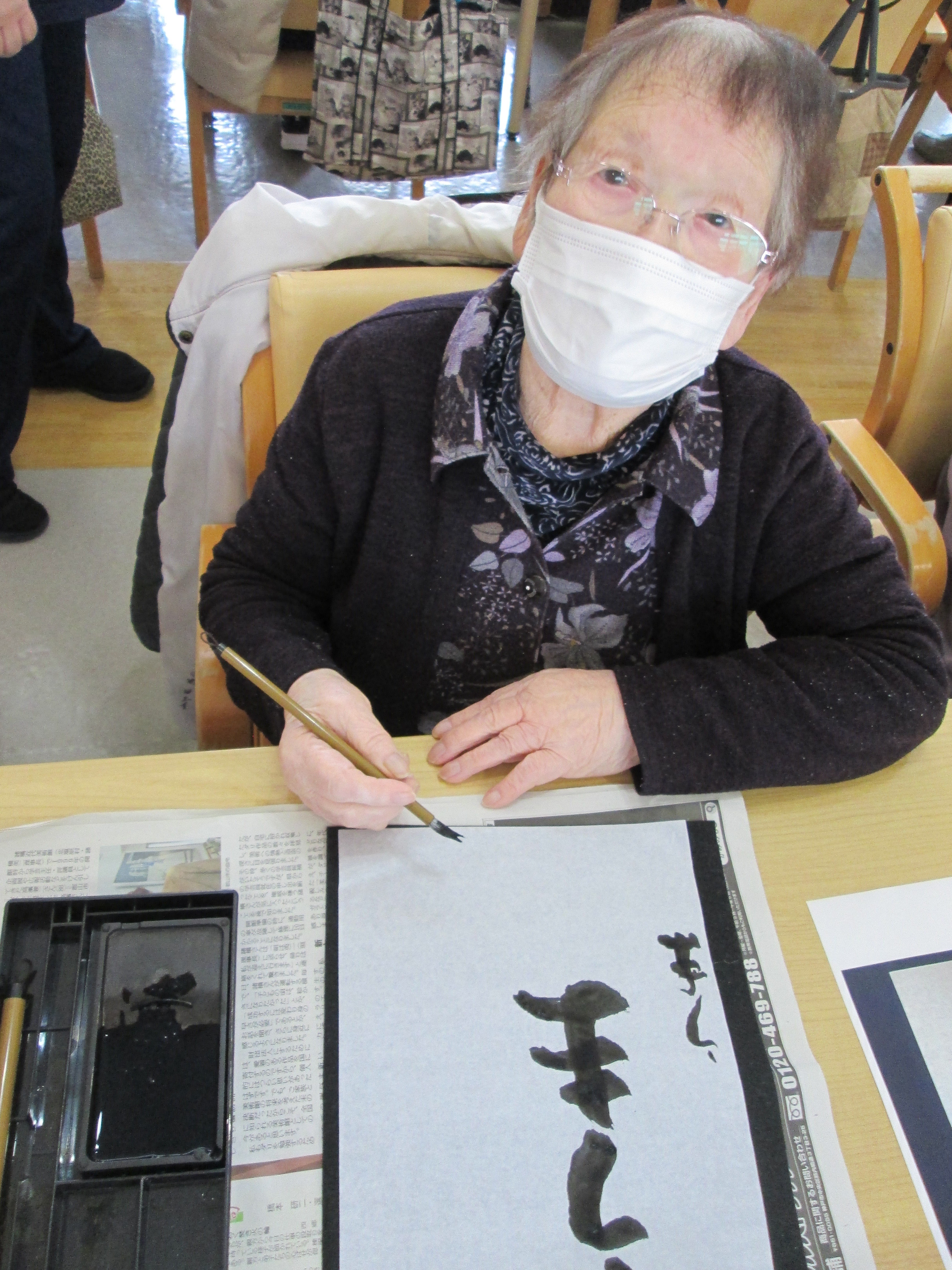 新年の恒例行事として、デイサービスで書初めを実施しました。利用者の皆さんは、今年の目標や好きな言葉を思い思いに筆に込め、一文字一文字丁寧に書かれていました。真剣な表情の中にも笑顔が見られ、和やかな雰囲気に包まれた時間となりました。午後のおやつには、新年にちなんだ華やかな和菓子と温かい飲み物が提供され、季節感を味わいながら楽しまれていました。心新たに一年の始まりを感じる、温かいひとときとなりました。南東北川俣デイサービスセンター