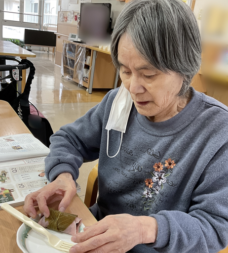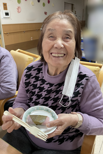 とっても柔らかい餅の中に皆さん大好きな餡子がたくさん入っていて、とても嬉しそうに食べている利用者さんの姿が見られました!