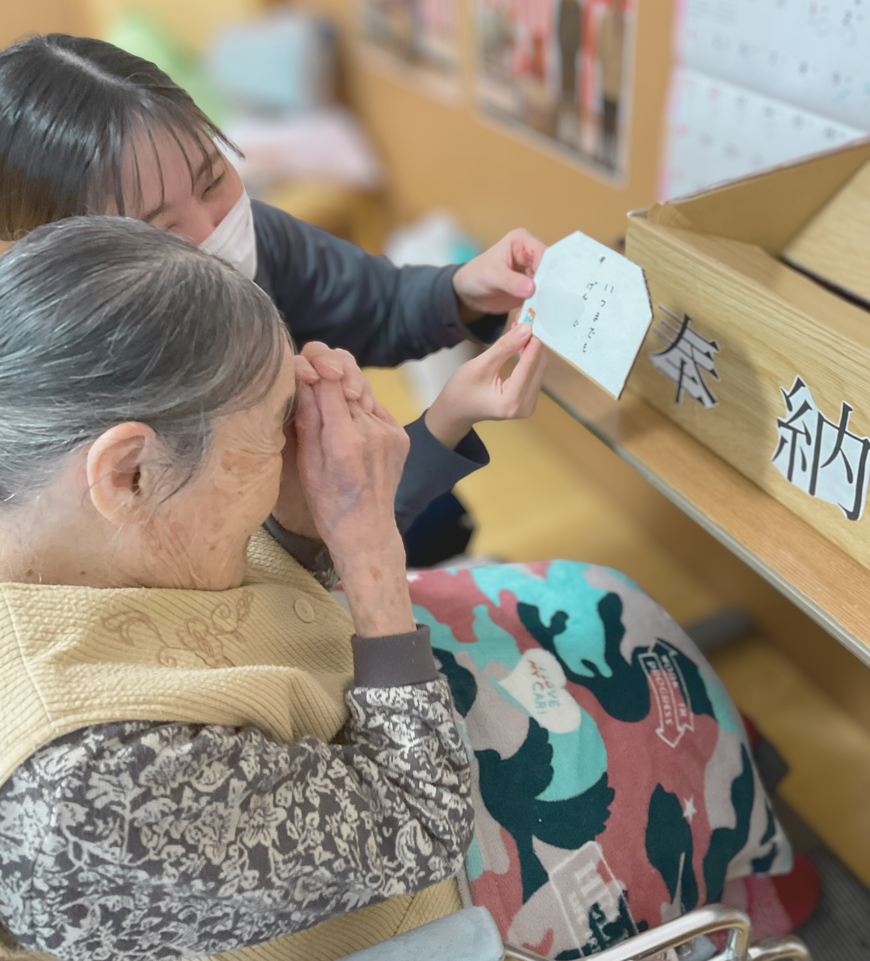こんにちは、すいせん・りんどうユニットです。先日、ユニットにて初詣行事を行いました。手作りの神社を作り初詣気分を味わって頂けたらいいなと思い開催してみました。絵馬にお願いごとを書いたり、おみくじを引いたり...神社に向かって手を合わせてくださる利用者さんもいらっしゃいました!