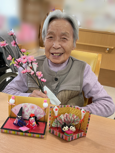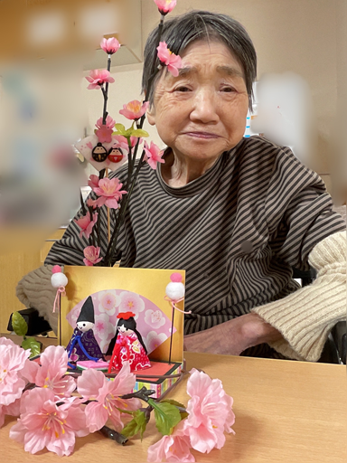 老健3階でも雛祭りが行われ、提供された甘酒とようかんに利用者さんは「美味しい」と満足されていました!